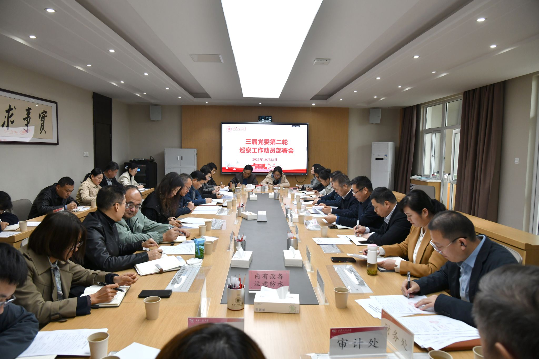 10月23日,我校召开第三届党委第二轮巡察工作动员部署会。校党委书记、巡察工作领导小组组长张志昌,校党委副书记、纪委书记、监察专员,校党委巡察工作领导小组副组长辛永昌出席会议。学校党委巡察工作领导小组成员单位负责人、党委巡察组成员,纺织科学与工程学院、机电工程学院、新媒体艺术学院、马克思主义学院、材料工程学院、体育部等被巡察单位的党政负责人参会。会议由张志昌主持。